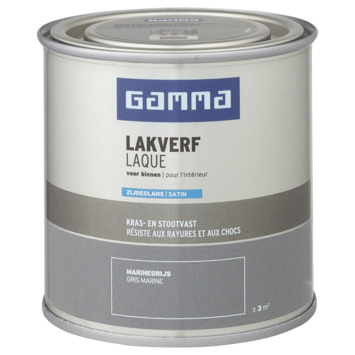Deze GAMMA binnenlak zijdeglans 250 ml marinegrijs is een verf op waterbasis. Verf op waterbasis is de beste keuze voor binnenshuis. Het is geurarm en blijft langer mooi van kleur. Deze kras- en stootvaste verf is geschikt voor hout, en in combinatie met de daarvoor geschikte grondverf, ook voor metaal en kunststoffen.