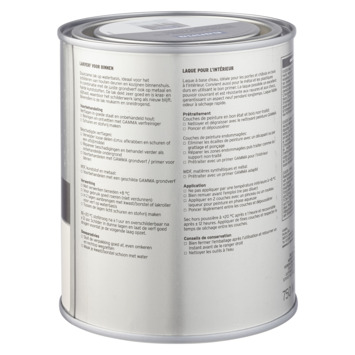 Voor een optimaal resultaat van de GAMMA binnenlak behandel je de ondergrond eerst met GAMMA grondverf voor binnen. Het blik heeft een inhoud van 750 milliliter, dit is voldoende voor een oppervlakte van ongeveer 9 m². Drie uur na het aanbrengen van de verf is deze reeds stofdroog, na 24 uur kan je de volgende laag aanbrengen. Verwerk de verf bij temperaturen tussen de 8 en 25°C.