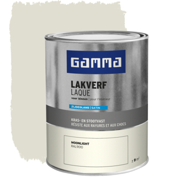 De GAMMA binnenlak zijdeglans RAL 9010 moonlight 750 ml is geschikt voor het schilderen van onder andere deuren, kozijnen en meubels binnenshuis. Deze kras- en stootvaste lak beschermt oppervlakken goed en geeft ze een strakke zijdeglans afwerking. De lak is op waterbasis, waardoor hij geurarm is en minder snel vergeelt. Je kunt hem direct op hout aanbrengen, en in combinatie met een geschikte grondverf ook op metaal en kunststof. De verf is stofdroog na 1 uur en overschilderbaar na 12 uur.