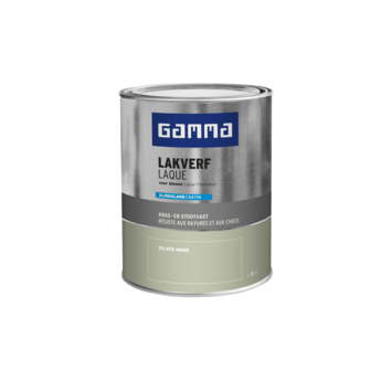 De GAMMA binnenlak zijdeglans silver moss 750 ml is geschikt voor het schilderen van onder andere deuren, kozijnen en meubels binnenshuis. Deze kras- en stootvaste lak beschermt oppervlakken goed en geeft ze een strakke zijdeglans afwerking. De lak is op waterbasis, waardoor hij geurarm is en minder snel vergeelt. Je kunt hem direct op hout aanbrengen, en in combinatie met een geschikte grondverf ook op metaal en kunststof. De verf is stofdroog na 1 uur en overschilderbaar na 12 uur.