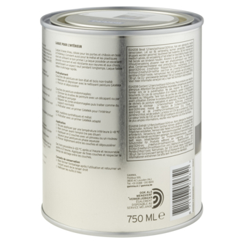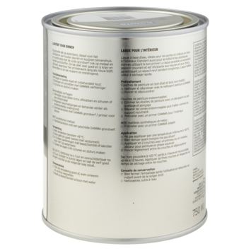 Voor een optimaal resultaat van de GAMMA binnenlak behandel je de ondergrond eerst met de GAMMA grondverf voor binnen. Het blik heeft een inhoud van 750 milliliter, dit is voldoende voor een oppervlakte van ongeveer 9 m². Een uur na het aanbrengen van de verf is deze reeds stofdroog, na 20 uur kan je de volgende laag aanbrengen. Verwerk de verf bij temperaturen tussen de 8 en 25°C.