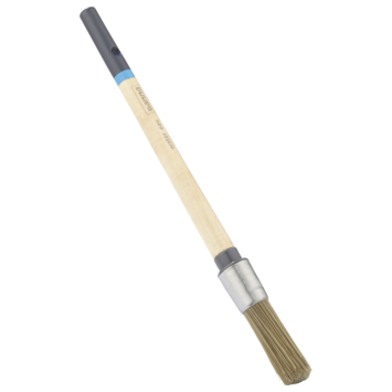 De GAMMA borstel rond voor watergedragen verf maat 8 is een ronde verfborstel die je gebruikt voor verf op waterbasis. Met een breedte van 8 millimeter is deze borstel geschikt voor detailwerk en kleine oppervlakken zoals randen of smalle profielen. Je gebruikt hem op gladde en ruwe ondergronden zoals hout, metaal en kunststof. De haren zijn een combinatie van synthetisch en natuurlijk materiaal en zorgen voor een goede verfopname en een gelijkmatige verdeling zonder haarverlies. De houten steel ligt stevig in de hand en de haren zitten vast in een roestvrije metalen bus zodat je de borstel opnieuw kan gebruiken. Je gebruikt deze verfborstel voor muur- en plafondverf op waterbasis.
