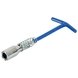 Deze sleutel voldoet niet. De smalle T maakt echt vastzetten lastig. Echt vastzetten laat de kruiskoppeling onderin al een beetje torderen. Verder zit de veer tussen dop en stang in de weg. Functie is mij niet duidelijk. Tenslotte schuift de bougie niet ver genoeg in de dop. De ook leverbare 16mm dop is heel veel prettiger in gebruik.