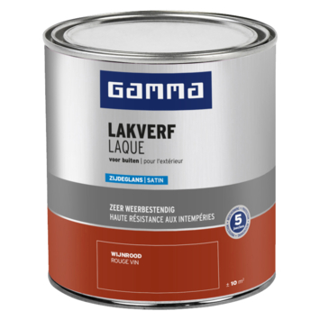 Deze GAMMA buitenlak biedt een prima bescherming voor je huis. Deze zijdeglans verf, op basis van terpentine, maakt je kozijnen, deuren, gevelbetimmering en dakranden bestand tegen wisselende weersomstandigheden, zoals Uv-licht, regen en vorst. De kleur wijnrood en zijdeglans blijft zo extra lang behouden. De lak is te gebruiken als mooie afwerking van nieuw onbehandelde delen, maar ook op bestaand schilderwerk of om meubels een nieuwe look te geven. De verf is in combinatie met de juiste grondverf ook geschikt voor metaal en harde kunststoffen. De lak heeft een hoge dekkracht, blijft lang glanzen en vloeit uitstekend.