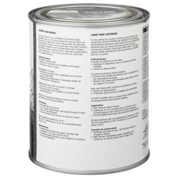 Voor een optimaal resultaat van deze GAMMA Color Intens binnenlak behandel je de ondergrond eerst met de GAMMA Color Intens grondverf. Het blik heeft een inhoud van 750 milliliter, dit is voldoende voor een oppervlakte van ongeveer 7,5 m². Drie uur na het aanbrengen van de verf is deze reeds stofdroog, na 24 uur kan je de volgende laag aanbrengen. Verwerk de verf bij temperaturen tussen de 8 en 25°C.