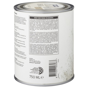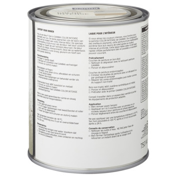 GAMMA Color Intense is een kleurconcept voor binnen schilderwerk van hoge kwaliteit en diepe kleurkracht. Deze GAMMA color intense binnenlak mat 750 ml RAL 9010 is een verf op waterbasis. Verf op waterbasis is de beste keuze voor binnenshuis. Het is geurarm en blijft langer mooi van kleur. Deze verf is geschikt voor hout, en in combinatie met de daarvoor geschikte grondverf, ook voor metaal en kunststoffen. Door gebruik van de beste pigmenten in deze verf, behoud je de diepe en intense kleurkracht. De lak op waterbasis vloeit uitstekend, en heeft een extra goede dekking. Voor een optimaal resultaat van deze GAMMA Color Intens binnenlak behandel je de ondergrond eerst met GAMMA Color Intens grondverf. Het blik heeft een inhoud van 750 milliliter, dit is voldoende voor een oppervlakte van ongeveer 7,5 m². Drie uur na het aanbrengen van de verf is deze reeds stofdroog, na 24 uur kan je de volgende laag aanbrengen. Verwerk de verf bij temperaturen tussen de 8 en 25°C. De lak is te gebruiken als afwerking van nieuwe onbehandelde delen, maar ook op bestaand schilderwerk of om meubels een nieuwe uitstraling te geven. De binnenlak is eenvoudig aan te brengen met een verfborstel of lakroller voor verf op waterbasis. Deze koop je bij de dichtstbijzijnde GAMMA of via de webshop. Wij hebben de 20 meest trendy kleuren kant en klaar voor jou beschikbaar. Zowel in muur- als lakverf. Mocht de kleur die je zoekt er niet bij staan dan is het altijd mogelijk om bij onze verfadviseur speciaal jouw kleur te laten mengen. Zo creëer je altijd de woonsfeer die bij jou past: romantisch, industrieel, sereen of heel kleurrijk, alles is mogelijk. Kortom deze lak is een prima keuze om jouw interieur een nieuwe uitstraling te geven.