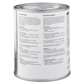Voor een optimaal resultaat van deze GAMMA Color Intens binnenlak behandel je de ondergrond eerst met de GAMMA Color Intens grondverf. Het blik heeft een inhoud van 750 milliliter, dit is voldoende voor een oppervlakte van ongeveer 7,5 m². Drie uur na het aanbrengen van de verf is deze reeds stofdroog, na 24 uur kan je de volgende laag aanbrengen. Verwerk de verf bij temperaturen tussen de 8 en 25°C.