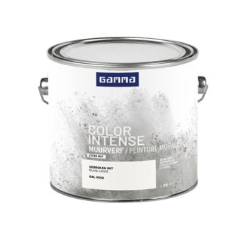GAMMA Color Intense is een kleurconcept voor binnenschilderwerk van hoge kwaliteit en diepe kleurkracht. De GAMMA Color Intense muurverf extra mat 2,5 L RAL 9010 is een geur arme watergedragen muurverf. Het blik heeft een inhoud van 2,5 liter, dit is voldoende voor een oppervlakte van ongeveer 25 m². Twee uur na het aanbrengen van de verf is deze reeds stofdroog, na 6 uur kan je de volgende laag aanbrengen. De beste temperatuur om met deze verf te werken is tussen de 8 en 25°C. In deze Color Intense muurverf maken we gebruik van de beste pigmenten, bereik je met deze verf een karakteristiek diepe kleurkracht. Door gebruik van extra bindmiddel heeft de verf een extreem hoge dekkracht en een zeer goede hechting. Hierdoor is de muur ook goed te reinigen met een vochtige doek, daardoor is deze verf uitstekend geschikt om te gebruiken in diverse ruimtes die intensief gebruikt worden, zoals bijvoorbeeld de keuken, gang of woonkamer. Er zijn 20 trendy kleuren kan en klaar beschikbaar in jou vestiging. En de verfadviseurs kunnen voor jou iedere andere kleur mengen. De muurverf is verkrijgbaar in extra mat of zijdemat, zijdemat is verkrijgbaar in de GAMMA vestiging bij jou in de buurt bij de mengmachine. Met GAMMA Color Intense creëer je eenvoudig de woonsfeer die bij jou past, romantisch, industrieel, sereen of juist heel kleurrijk, alles is mogelijk. Kortom deze muurverf is een prima keuze om het jouw interieur een nieuwe uitstraling te geven.