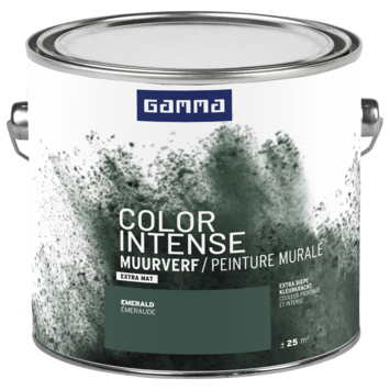 GAMMA Color Intense is een kleurconcept voor binnenschilderwerk van hoge kwaliteit en diepe kleurkracht. De GAMMA Color Intense muurverf extra mat 2,5 L emerald is een geur arme watergedragen muurverf. Het blik heeft een inhoud van 2,5 liter, dit is voldoende voor een oppervlakte van ongeveer 25 m². Twee uur na het aanbrengen van de verf is deze reeds stofdroog, na 6 uur kan je de volgende laag aanbrengen. De beste temperatuur om met deze verf te werken is tussen de 8 en 25°C. In deze Color Intense muurverf maken we gebruik van de beste pigmenten, zo bereik je met deze verf een karakteristiek diepe kleurkracht. Door gebruik van extra bindmiddel heeft de verf een extreem hoge dekkracht en een zeer goede hechting. Hierdoor is de muur ook goed te reinigen met een vochtige doek, daardoor is deze verf uitstekend geschikt om te gebruiken in diverse ruimtes die intensief gebruikt worden, zoals bijvoorbeeld de keuken, gang of woonkamer.
