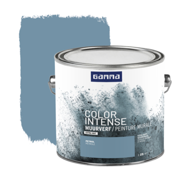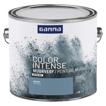 GAMMA Color Intense is een kleurconcept voor binnenschilderwerk van hoge kwaliteit en diepe kleurkracht. De GAMMA Color Intense muurverf extra mat 2,5 L petrol is een geur arme watergedragen muurverf. Het blik heeft een inhoud van 2,5 liter, dit is voldoende voor een oppervlakte van ongeveer 25 m². Twee uur na het aanbrengen van de verf is deze reeds stofdroog, na 6 uur kan je de volgende laag aanbrengen. De beste temperatuur om met deze verf te werken is tussen de 8 en 25°C. In deze Color Intense muurverf maken we gebruik van de beste pigmenten, zo bereik je met deze verf een karakteristiek diepe kleurkracht. Door gebruik van extra bindmiddel heeft de verf een extreem hoge dekkracht en een zeer goede hechting. Hierdoor is de muur ook goed te reinigen met een vochtige doek, daardoor is deze verf uitstekend geschikt om te gebruiken in diverse ruimtes die intensief gebruikt worden, zoals bijvoorbeeld de keuken, gang of woonkamer.