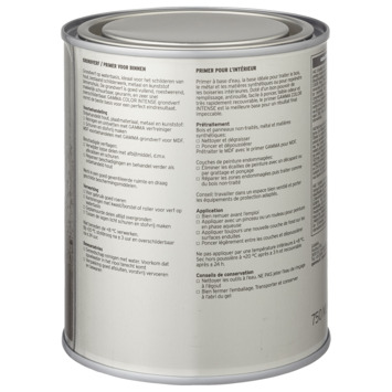 De GAMMA Color Intense grondverf 750 ml WIT is een uitstekende basis voor goed schilderwerk binnenshuis. Je beschermt het houtwerk, plaatmateriaal, bestaand schilderwerk en voorbehandeld metaal binnenshuis optimaal door de ondergrond voor te behandelen met deze extra dekkende grondverf. Door het gebruik van GAMMA Color Intense grondverf op waterbasis hecht de afwerklaag beter en je krijgt een mooier eindresultaat met een goede en egale dekking. Het is een watergedragen verf, makkelijk schuurbaar en geurarm en daardoor de ideale grondverf voor al het houtwerk binnenshuis.