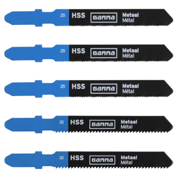 Het Gamma HSS decoupeerzaagblad met T aansluiting is uitermate geschikt voor het zagen in metaal. Dit artikel bevat een tweetal zaagbladen; zaagbladen met meerdere zaagtanden die daardoor geschikt zijnvoor nauwkeurige zaagklussen en een tweetal zaagbladen met een minder zaagtanden hetgeen er voor zorgt dat het zaagblad sneller door het materiaal glijdt. De verpakking bevat 5 decoupeerzaagbladen (3x25, 2x32).
