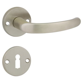 Voorzie je links- of rechtsdraaiende binnendeur in 1, 2, 3 van een klink met deze deurkrukset met deurkruk, rond rozet én schroeven. Maak je keuze uit verschillende modellen, waaronder deze tijdloze deurklink Bergerac in mat nikkel.
