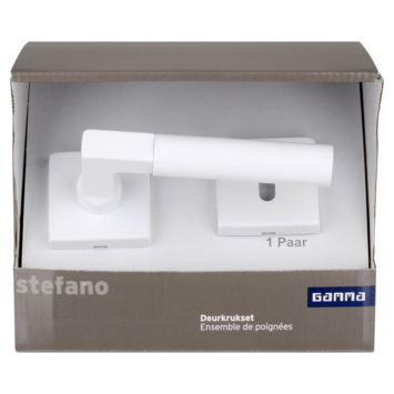 Voorzie je links- of rechtsdraaiende binnendeur in 1, 2, 3 van een klink met deze deurkrukset met deurkruk, rond rozet én schroeven. Maak je keuze uit verschillende modellen, waaronder deze deurklink Stefano in wit aluminium.