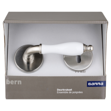 Gamma deurkruk set Bern rond rozet sleutelplaat RVS look messing