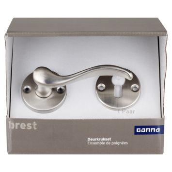 Voorzie je links- of rechtsdraaiende binnendeur in 1, 2, 3 van een klink met deze deurkrukset met deurkruk, rond rozet én schroeven. Maak je keuze uit verschillende modellen, waaronder deze klassieke deurklink Brest in mat nikkel.
