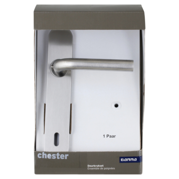 Gamma deurkruk set Chester ovaal schild sleutelgat 110 mm RVS