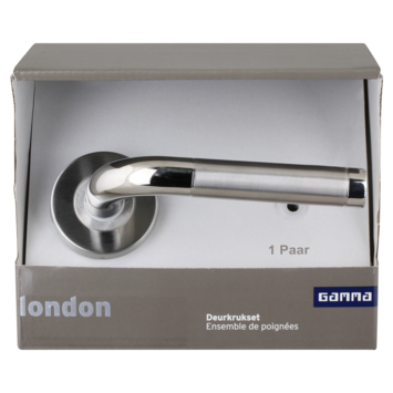 Gamma deurkruk set London rond rozet sleutelplaat RVS glans