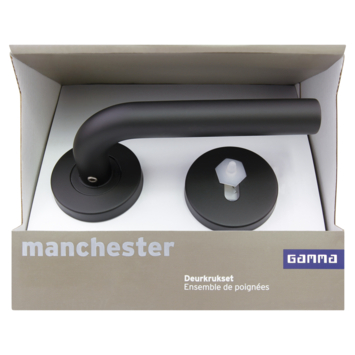 Gamma deurkruk set Manchester rond rozet sleutelplaat zwart INOX