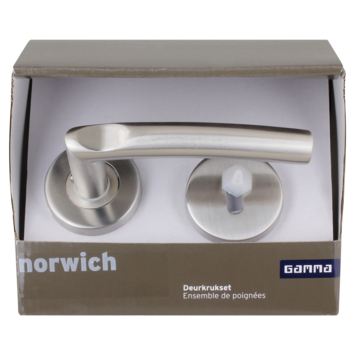 Gamma deurkruk set Norwich rond rozet sleutelplaat RVS