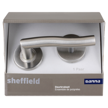 Gamma deurkruk set Sheffield rond rozet sleutelplaat RVS