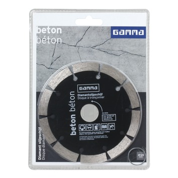 De Gamma diamantslijpschijf met een diameter van 125 mm is uitermate geschikt voor het slijpen van beton. De diamantslijpschijf is geschikt voor een haakse slijper.