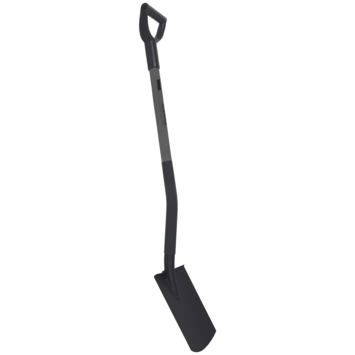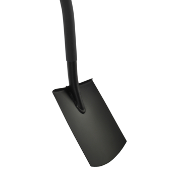 Deze schop heeft een metalen steel. De vorige had een houten steel, die brak. Wel is het handvat van plastic.