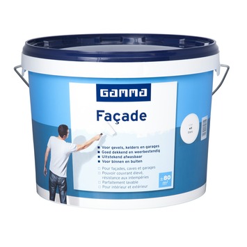 Met de GAMMA façadeverf haal je een goed dekkende, weersbestendige, uitstekend afwasbare, matte acrylaatverf in huis. De verf is speciaal ontworpen voor het schilderen van gevels en buitenmuren, maar ook binnen voor het schilderen van muren en plafonds in vochtige ruimten zoals kelder, garage, keuken en badkamer. De verf is duurzaam, ademend, reukarm en spat weinig.