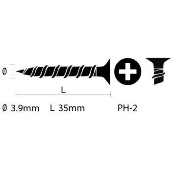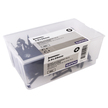 Deze gipsplaatschroef van GAMMA is speciaal gemaakt voor het schroeven in gipsplaten. De schroef heeft draad over de volle lengte en biedt daarmee veel grip in de materie. De zwarte metalen schroeven hebben een afmeting van 3,9 bij 35mm en zijn voorzien van een PH-schroefkop en een Philips-aandrijving. Je kan de schroeven dus indraaien met een kruiskopschroevendraaier. Deze schroeven zijn gefosfateerd, wat zorgt voor een goede hechting van stuc en pleisterwerk. Omdat de kop platverzonken is, zijn de ingedraaide schroeven niet meer zichtbaar. Eén verpakking bevat 150 stuks.