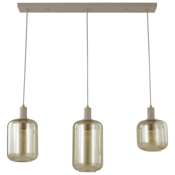 De hanglamp Chantalle van GAMMA beschikt over drie lichtpunten, elk voorzien van een lampenkap van amber kleur glas met een open onderkant, waardoor het licht mooi naar beneden schijnt. Met afmetingen van 130 cm in de hoogte, 94 cm in lengte en een diameter van 18 cm voegt deze Chantalle hanglamp een vleugje elegantie toe aan elke ruimte. E27 lichtbronnen zijn niet meegeleverd!