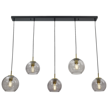Deze stijlvolle hanglamp met 5 lichtpunten van GAMMA zorgt voor een aangename sfeer en een mooi effect in je woonruimte. De plafondlamp heeft een zwarte balk met glazen bollen met messing touch. Met afmetingen van 130cm in hoogte, 120cm in breedte en een diameter van 20 cm, voegt deze lamp stijlvolle elegantie toe aan elke ruimte. De lampenkappen zijn aan de onderkant open, waardoor het licht mooi naar beneden schijnt. Het snoer van de lamp kan indien gewenst worden aangepast in hoogte. E27 lampen zijn niet meegeleverd!