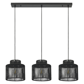 De hanglamp James is exclusief gemaakt voor de E27 lichtbron. De hanglamp is gemaakt van textiel en heeft een donkere zwarte kleur. De lampenkappen hebben een open design, waardoor het een bijzonder effect aan de ruimte geeft. De hanglamp heeft 3 lichtpunten. Elke lampenkap heeft een diameter van 20 cm. De lamp wordt geleverd exclusief lichtbron.