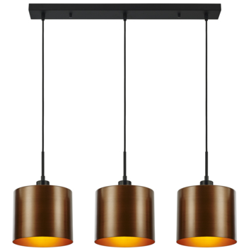 De hanglamp Mare is exclusief voor de E27 lichtbron. De hanglamp heeft 3 lichtpunten met elk een metalen lampenkap in de kleur koper. De hanglamp heeft een strak design en geeft veel sfeer aan de ruimte. De hanglamp wordt exclusief lichtbron geleverd. Elke lampenkap heeft een diameter van 20 cm. De hanglamp is tot 1.3 meter verstelbaar.