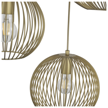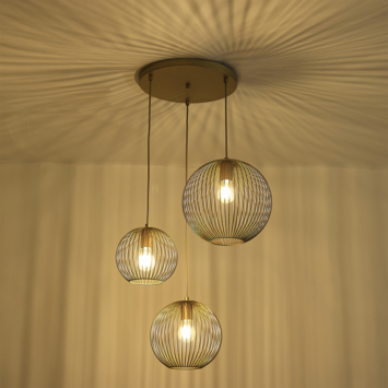 De hanglamp Nikki is exclusief voor de E27 lamp. De hanglamp heeft 3 lichtpunten die elk op een andere hoogte hangen. De lampenkappen zijn gemaakt van messingkleurig metaal met een open design. Door het design van de hanglamp geeft het veel sfeer aan de ruimte. De gehele hanglamp heeft een diameter van 60 cm. De lamp wordt geleverd exclusief lamp.