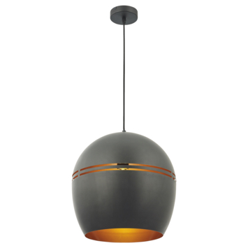 De hanglamp Ninthe is exclusief voor de E27 lichtbron. De hanglamp heeft een zwarte kleur met als binnenkant een gouden kleur. Dit geeft een mooi effect aan de ruimte. De lampenkap heeft een ronde vorm en heeft een omtrek van 31 cm. De lamp wordt geleverd exclusief lichtbron.
