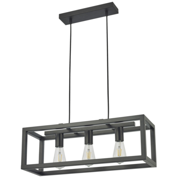 De hanglamp Simone is exclusief voor de E27 lichtbron. De hanglamp is een geheel met 3 lichtpunten. De hanglamp is gemaakt van zwart metaal. De hanglamp heeft een lengte van 20 cm en een breedte van 60 cm. De diepte van de hanglamp is 20 cm. De hanglamp heeft een modern design en wordt exclusief lichtbron geleverd.
