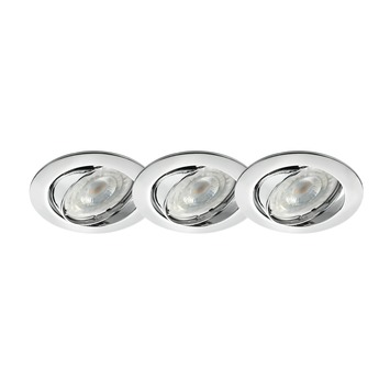 De GAMMA inbouwspots LED GU10 3X5W richtbaar chroom zijn voorzien van een GU10 fitting en worden geleverd inclusief energiezuinige LED van 5 watt. De LED heeft een lichtopbrengst van 345 lumen. De spots zijn goed te gebruiken om een bepaald punt in jouw interieur uit te lichten. De inbouwspots zijn richtbaar zodat je de lichtstraal gemakkelijk kunt afstellen. Door de chromen afwerking en strakke vormgeving passen de inbouwspots goed binnen een modern vertrek. Kortom, de GAMMA LED-inbouwspots zijn een goede accentverlichting voor in elk interieur.