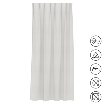 Je kunt dit gordijn met de hand wassen in lauw water en evt. lauw strijken, maar het gordijn is niet geschikt voor de centrifuge en droger.