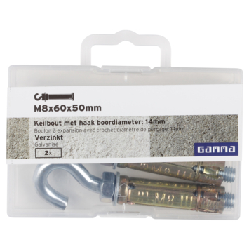 GAMMA keilbout met haak verzinkt M8x60 mm 2 stuks