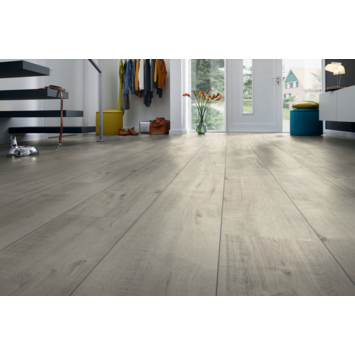Ontdek de perfecte harmonie tussen elegantie en functionaliteit met het GAMMA Laminaat Signature Extra Breed wit eiken. De wit eiken kleur geeft de vloer een rustieke uitstraling passend bij een verscheidenheid aan interieurstijlen. Het extra brede laminaat is 30% breder dan gewoon laminaat. Daarnaast is deze laminaatvloer voorzien van een subtiele v-groef langs de lange zijden, waarmee de planken nog meer tot hun recht komen. De vloer heeft een klikverbinding, waardoor het leggen van het laminaat gemakkelijk is en een naadloos effect oplevert. Bovendien kan het laminaat zwevend gelegd worden, zonder dat het aan de ondervloer gelijmd hoeft te worden. De laminaatvloer is in combinatie met de juiste ondervloer prima geschikt voor eventuele vloerverwarming aan de hand van warmwaterbuizen. Dit kliklaminaat is antislip en biedt daardoor extra stabiliteit en grip om vallen te voorkomen. Laminaat is daarbij door zijn reinigingsgemak zeer onderhoudsvriendelijk. De laminaatvloer heeft een dikte van 8 mm, wat bijdraagt aan een goede stabiliteit en het product geschikt maakt voor zowel intensief woongebruik als normaal commercieel gebruik. De verpakking bevat 8 lamellen wat resulteert in een totale inhoud van 2.69 m².