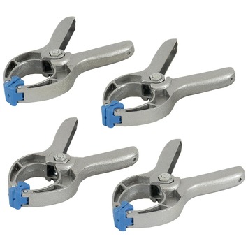 De GAMMA lijmklem met veer is een handig hulpstuk bij het lijmen. Ookwanneer je even iets op de plaats wilt houden, maar handen tekort komt, is deze lijmklem uitstekend te gebruiken. De lijmklem met veer is bij GAMMA verkrijgbaar als set. In deze set zitten 4 lijmklemmen met allen een sterke veer. De lijmklemmen zijn gemaakt van aluminium en hebben kantelbare beschermkappen die handig zijn om onregelmatige vormen vast te klemmen. De klemmen hebben een maximaal klembereik van 2,5cm. Kortom, de GAMMA lijmklemmen met veer zijn geschikt als hulpmiddel tijdens het lijmen op hobbymatige basis. Bekijk het assortiment van GAMMA voor andere maten hobbylijmklemmen.