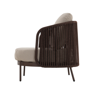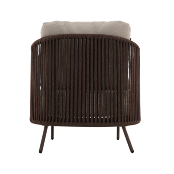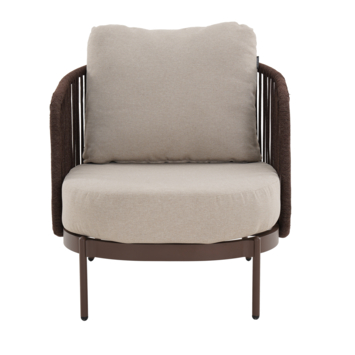 De Gamma loungestoel Britt bruin metaal is ideaal als je graag comfortabel buiten zit. Met een zithoogte van 40 cm zit je lager en meer ontspannen, wat perfect is voor een loungehoek in je tuin of op je terras. Ideaal voor lange zomeravonden of een rustig moment buiten.