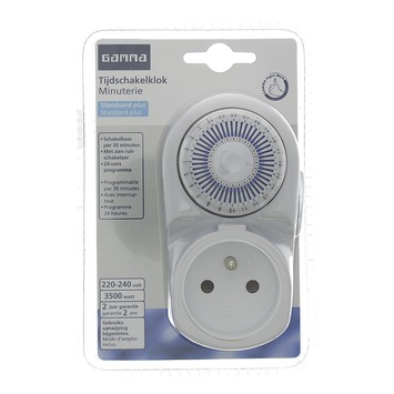 De mechanische tijdschakelklok van GAMMA is schakelbaar per 30 minuten. Beschikt over aan- en uitschakelaar en een programma per dag. Ideaal om je verlichting te timen, bijvoorbeeld in je gang om inbrekers af te schrikken.