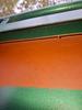 Aanvankelijk was ik van plan om er nadien nog een groene verflaag laag over te zetten, maar dat bleek overbodig: de rode kleur combineert verrassend goed met het groene deel van de aanhanger.