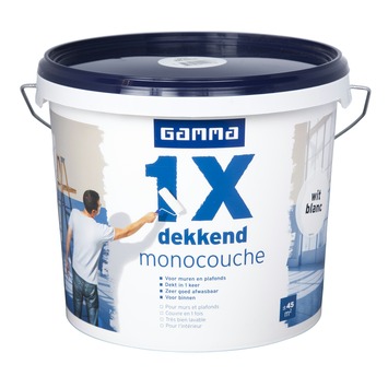 Met de GAMMA 1x dekkend muurverf haal je een optimaal dekkende, uitstekend reinigbare en matte latexverf in huis. Hij is geschikt voor het schilderen van muren en plafonds in bijvoorbeeld woon- en slaapkamer, hal, enz. De verf is ademend, reukarm en spat weinig. De verf is geschikt voor toepassing binnenshuis.
