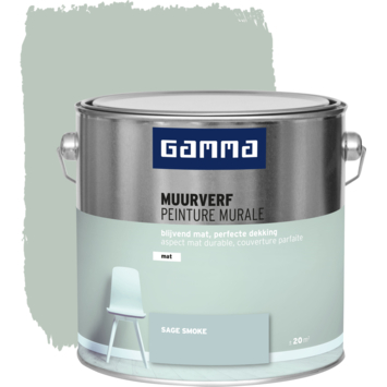 GAMMA muurverf sage smoke mat 2,5 liter is perfect voor het schilderen van muren en plafonds in je woning. Deze watergedragen verf heeft een inhoud van 2,5 liter, wat voldoende is voor het dekken van een oppervlakte van ongeveer 20 m². De verf droogt snel; na twee uur is deze al stofdroog en na zes uur kun je een nieuwe laag aanbrengen. De ideale verwerkingstemperatuur ligt tussen de 8 en 25°C. Dankzij de uitstekende dekking is de verf geschikt voor diverse ondergronden, zoals cement, pleisterwerk, gipsplaat, glasweefsel, beton en behang.