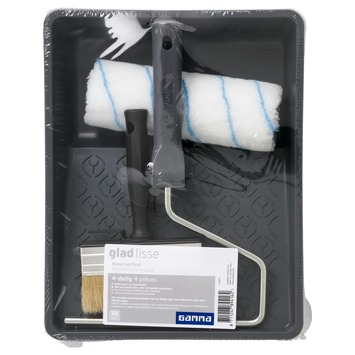 - Complete 4-delige set met roller, beugel, blokkwast en verfbak