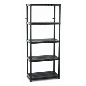 GAMMA biedt voordelige opbergrekken aan in verschillende materialen: hout, metaal en kunststof. Afhankelijk van het materiaal kan je rek meer (of minder) gewicht aan. Dit rek uit zwarte kunststof met 5 legborden kan 70 kilogram aan.