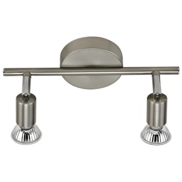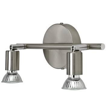 Deze GAMMA opbouwspot Amalfi 2-lichts is een zeer geschikt model om die ene mooie kast te verlichten en tevens een spot te richten op die donkere hoek van de kamer. Deze 2 lichts is een tijdloos model dat door zijn nikkelkleurig design is in ieder interieur past. Hij is geschikt voor zowel LED als halogeen met een maximuml van 40 Watt. Amalfi is ook uitgevoerd in een 3-lichts model en als enkel spot. Bekijk hiervoor, en de juiste (GU10) lichtbron, ons assortiment.