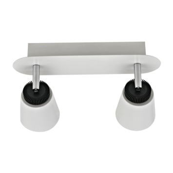 De witte GAMMA opbouwspot Cassino 2-lichts is een speels uitziende lamp. De twee spotjes geven allebei 380 lumen dat een aangename warm witte kleur in de gewenste ruimte geeft. Het geïntegreerd LED zit veilig door zijn stevige witte ijzeren armatuur. Richt de koppen van deze lamp gemakkelijk naar hetgeen je graag verlicht ziet. De Cassino serie is er ook in een 3-lichts variant en in een enkele spot.